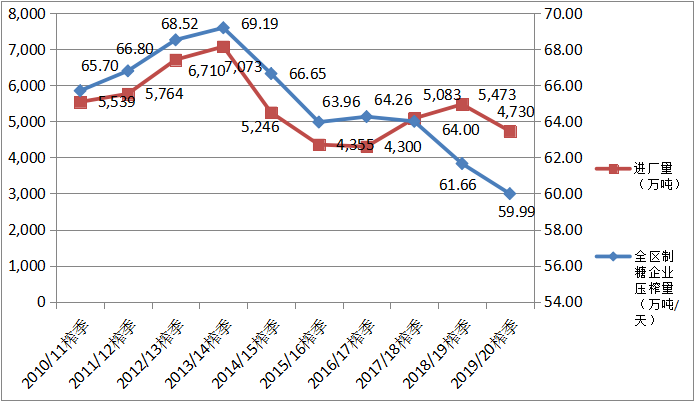 (五)甘蔗产量减产与制糖企业榨能力的提升。