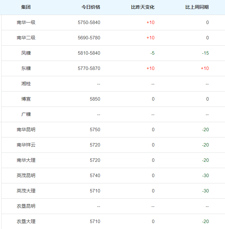 今日现货:随着全国各地企业陆续复工,全国销区大部分地区价格已恢复报价,今日报价看,个别地方小幅下跌。产区集团报价(图二)看,今日广西、云南集团报价持稳为主,仅广西个别集团报价小幅上调。