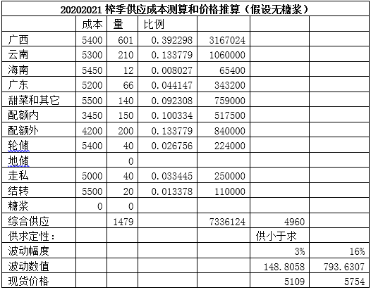 以2020/2021榨季为案例,分析糖浆对中国白糖产业的影响。详见下表: