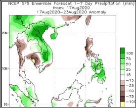 泰国计划在9 月下旬发布2020/21榨季的甘蔗和糖产量估算。今年5月,初步预测甘蔗和糖的产量都将低于或等于2019/20 榨季的水平。根据泰国气象部门的数据,7月份主产区降雨低于平均水平,进入8月份,降雨明显增多,但到了8月最后一周东北部产区降雨又将低于平均水平。从十月份开始,泰国北部和甘蔗主要生长的东北部地区的阵雨可能会开始减少。