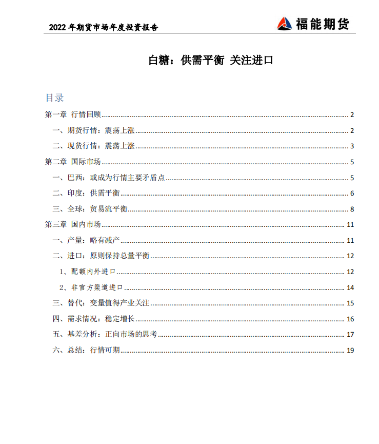 完整版报告请查看:白糖2022年度:供需平衡 关注进口.pdf