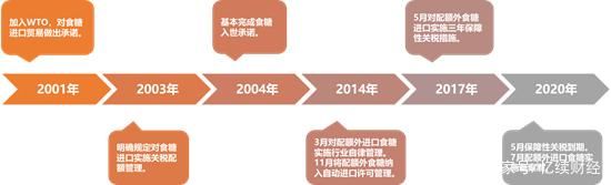 期间,2003年明确规定对食糖进口实施关税配额管理制度。