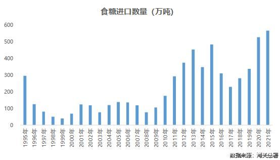 2004年至今我国食糖进口配额数量和配额内关税水平始终保持不变(194.5万吨配额,15%关税)。