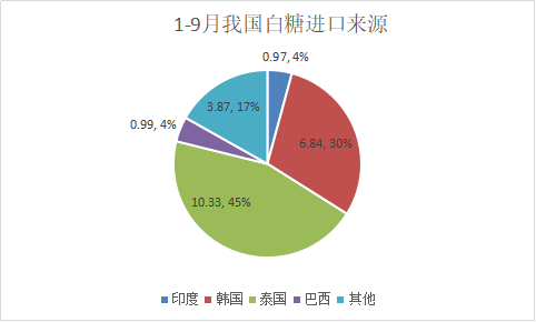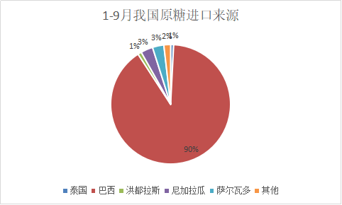 2025年1-9月我国进口食糖316万吨,其中白糖23万吨,从泰国进口最多10.33万吨,其次是韩国6.84万吨,第三从印度和巴西各进口约1万吨保持不变;进口原糖293万吨,其中从巴西进口最多263.81万吨,占比高达90%,其次从萨尔瓦多和尼加拉瓜各进口9-9.6万吨不变,还有2.91万吨、2.4万吨分别从洪都拉斯和泰国进口,9月份进口的约52万吨原糖仍然几乎全部来自巴西。