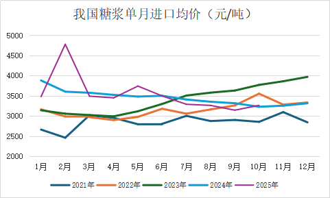 2025年1-10月我国进口糖浆、预混粉合计100.47万吨,同比减少95.89万吨,管控效果显著。其中糖浆47.96万吨,折糖大概32.13万吨;预混粉52.51万吨,折糖大概46.21万吨。