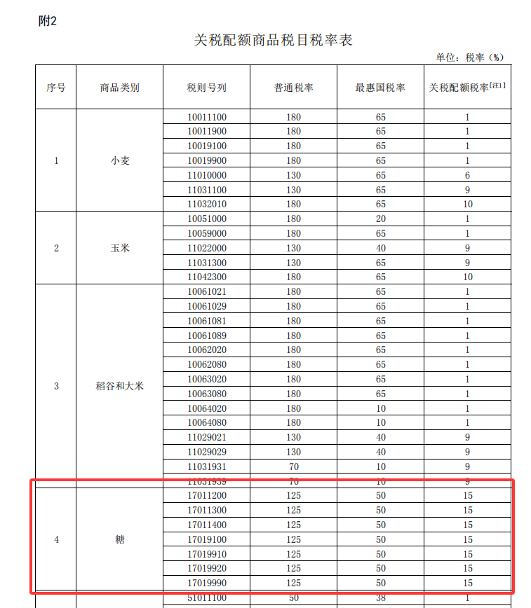 2026年关税调整方案涉糖部分明细