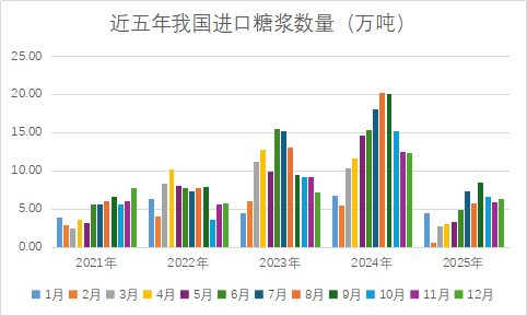 2025年我国17029011项下进口糖浆36.04万吨,大部分33.93万吨通过一般贸易进口,还有1.97万吨边境小额贸易;同期21069061项下进口糖浆22.39万吨,绝大部分22.14万吨通过一般贸易进口。