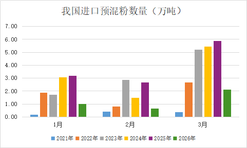 2026年1-3月我国17029012项下进口预混粉0.85万吨,全部通过一般贸易进口;同期21069062项下进口预混粉2.92万吨,也是全部通过一般贸易进口。