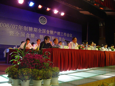广西糖网1日讯 《2006/2007年制糖期全国食糖产销工作会议》暨《全国食糖、酒精订货会》于11月1日早上九点正式开幕。来自全国各地制糖企业代表、流通领域代表、用糖生产企业代表共计四百多人参加了会议。