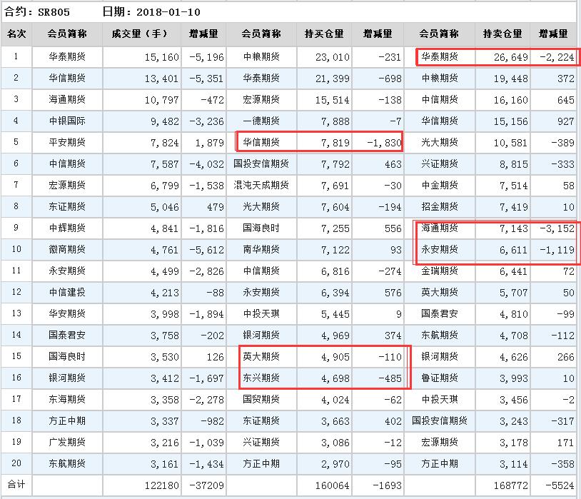 SR1801最后交易日时间为1月15日,最新持仓和仓单、预报对比情况。SR1801合约预计交割量在25万吨左右,其余仓单多为质押或者移交远月合约为主。