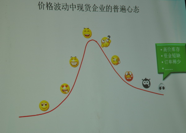 广西糖网25日讯 9月25日,第四届中国糖业经济高峰论坛在海南省博鳌金海岸温泉大酒店召开。下图为论坛发言嘉宾展示的现货企业在价格波动中的普遍心态。