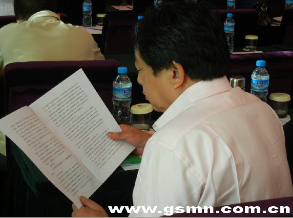 认真阅读工作报告的会议代表