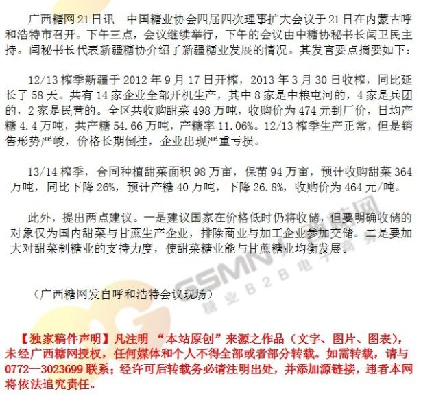 - 新疆预计13/14榨季减产26% 2013-08-21